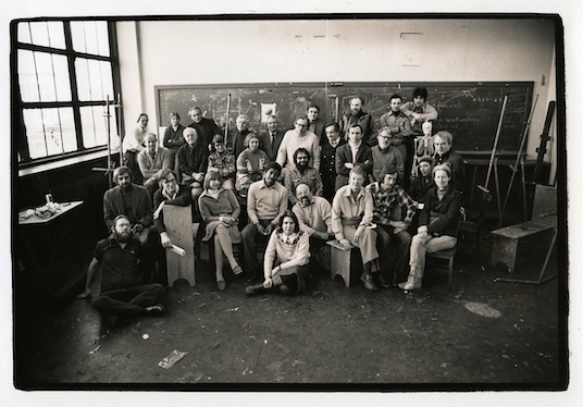Lois Dodd (bottom right) with Brooklyn College art faculty. (December 12, 1976. Photo: Paul Sheridan.)